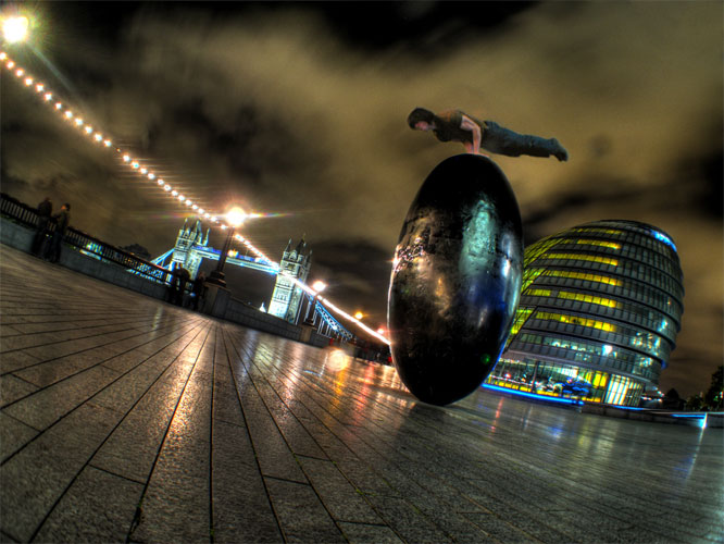 Man Balances on Giant Egg